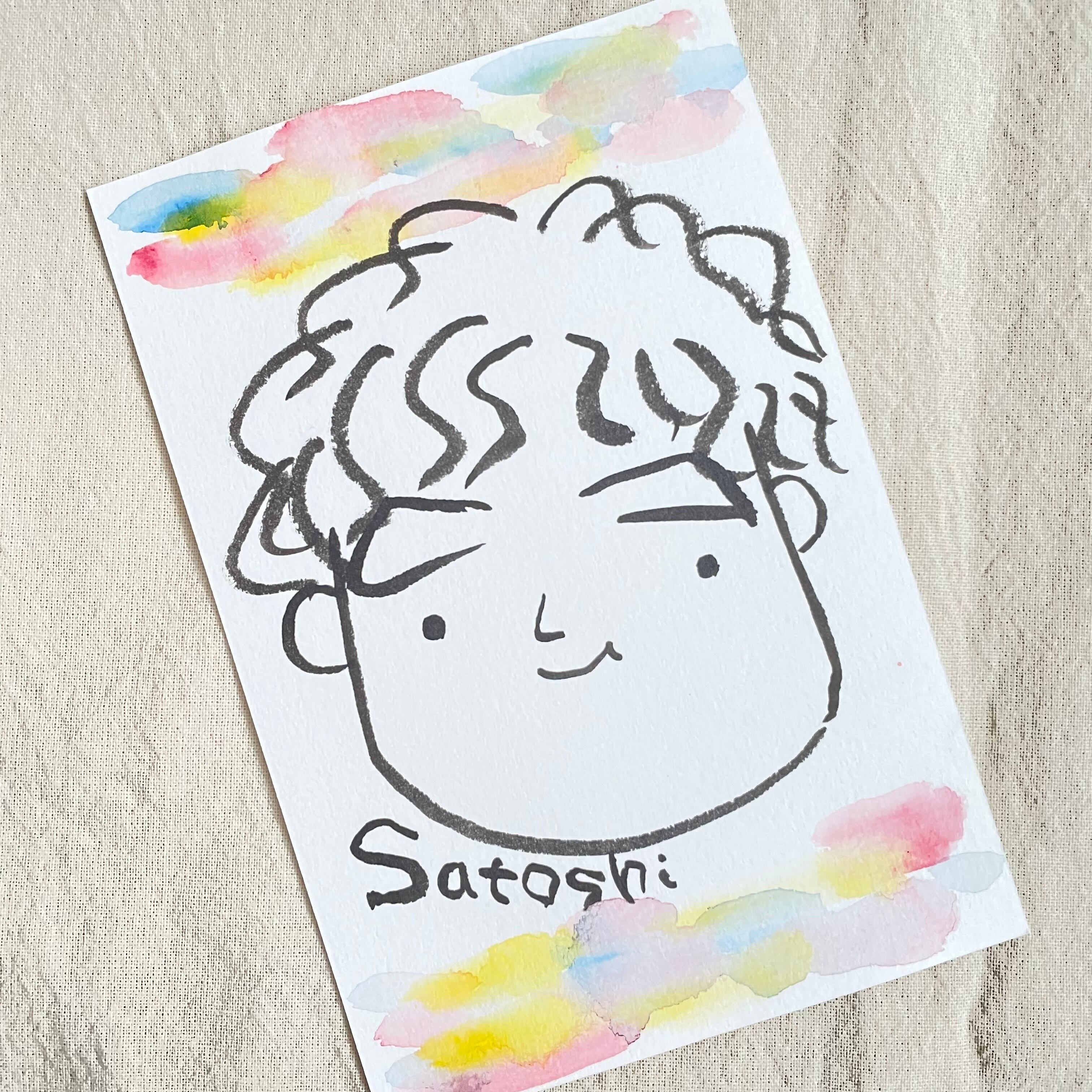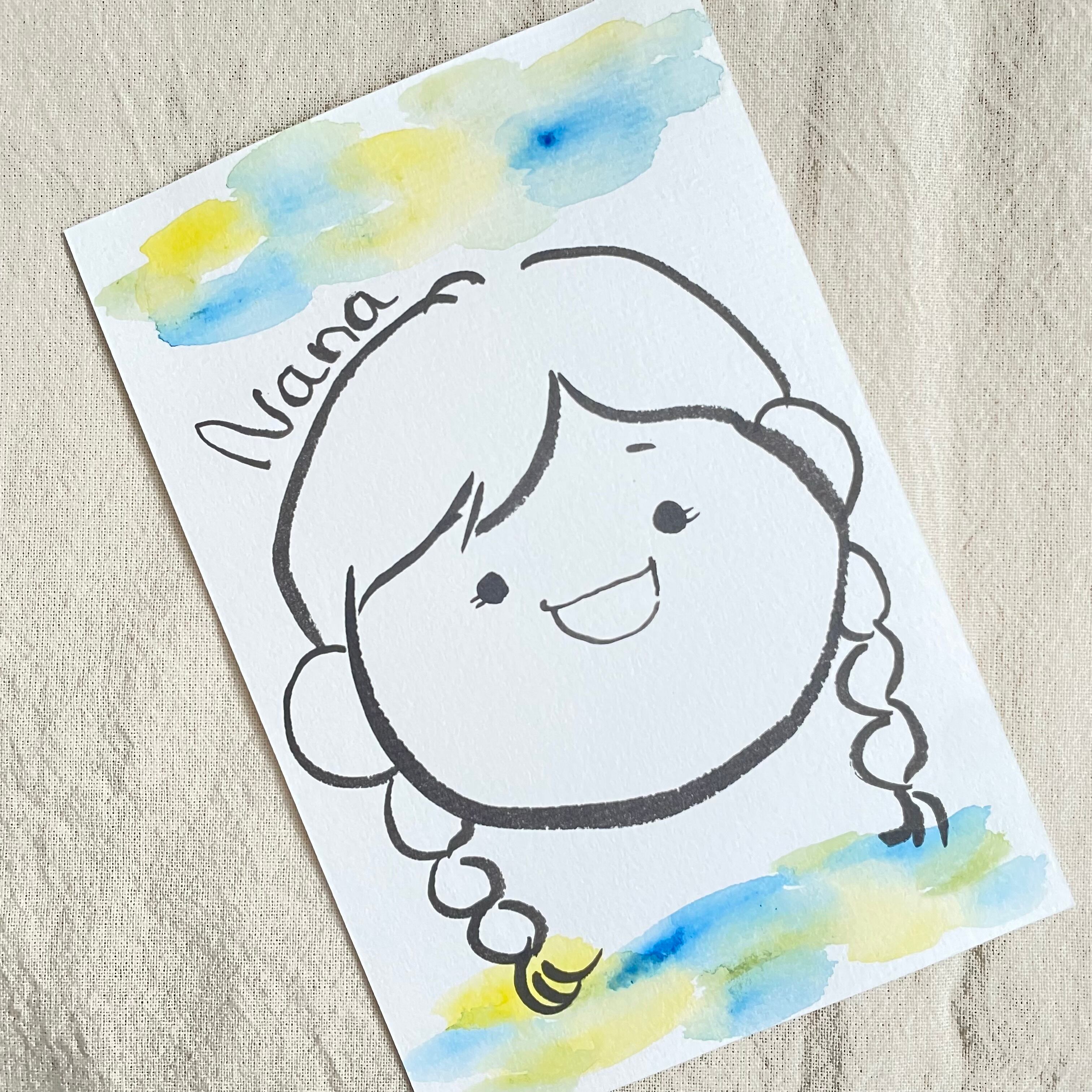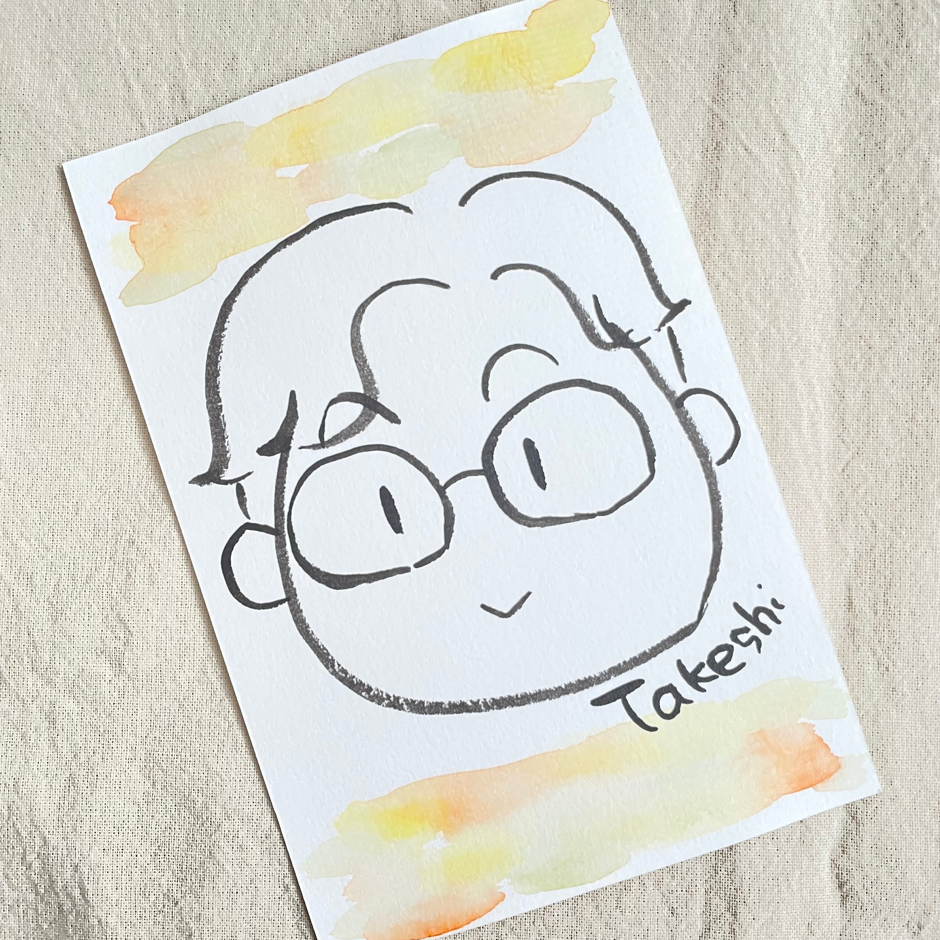 ゆるかわにがおえ(モノクロ)1人用ハガキサイズ|ゆるくどこか似てるが特徴の似顔絵。1人でも、家族みんなでも可愛い似顔絵です。