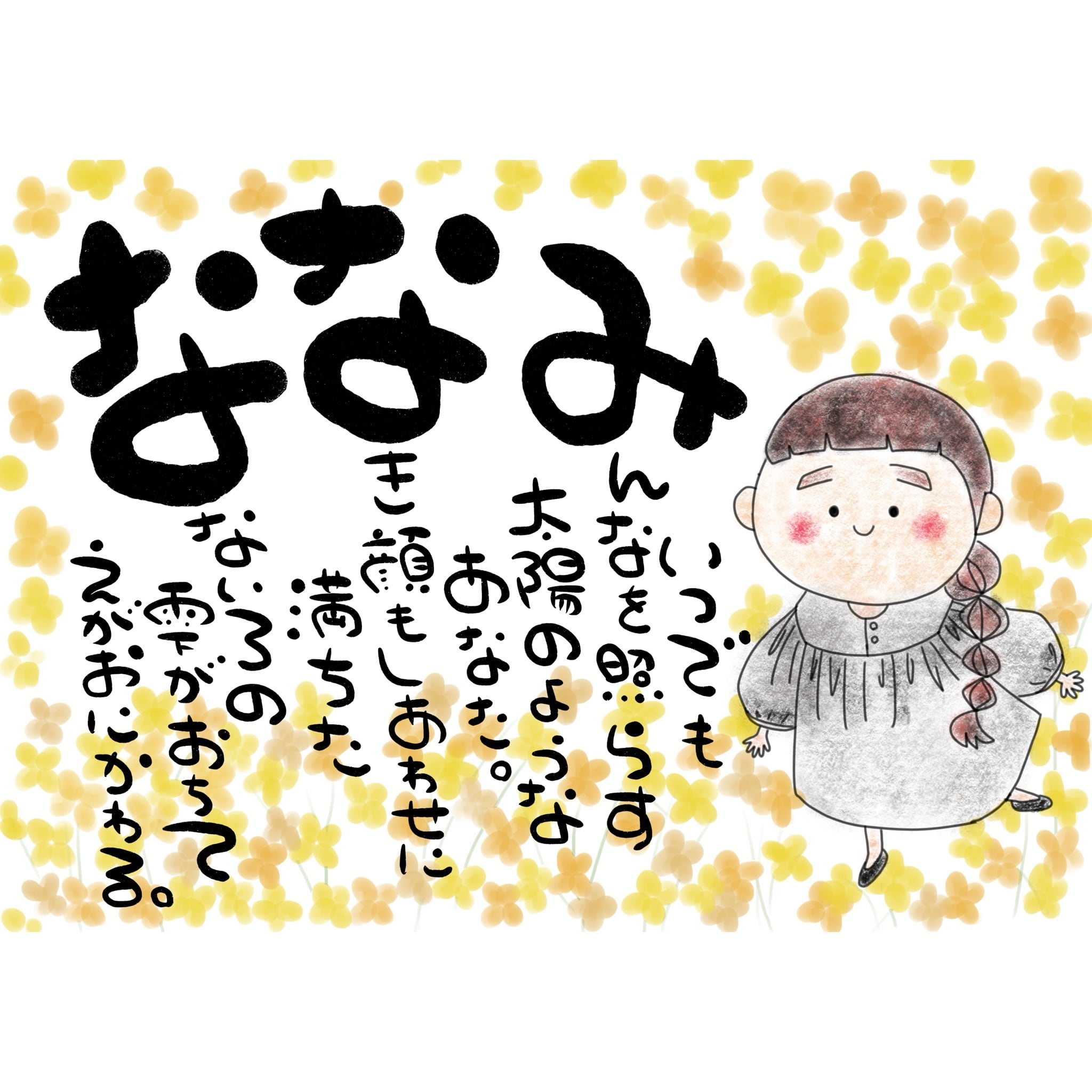 ゆるかわ似顔絵+おなまえぽえむ【全身ハガキサイズ】|みんなのこんなのあったらいいな♪を作っちゃいました!!ゆる〜い“似顔絵”に、思いがたくさん詰まった“ぽえむ”、背景も思い出で彩って♡特別な贈り物の完成